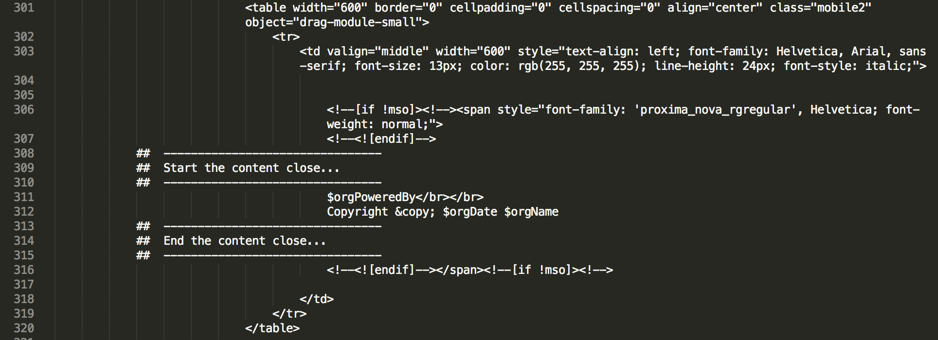 You will also notice there is a call within the </body> element for $body. This directive is calling content for the message based on the notification scenario. Content layouts for the $body element is provided in the /vcac/templates/email/html/forms/ directory contents.