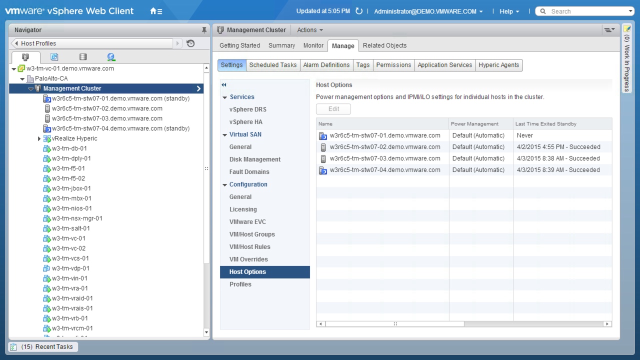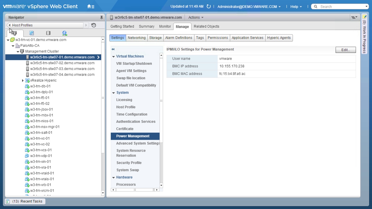 Now, let's configure all the hosts in the Management Cluster for Power Management.