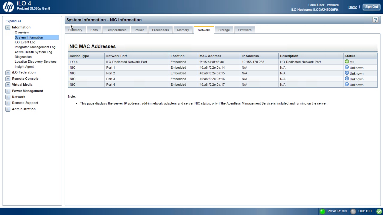 - MAC Address of the BMC. (Obtained in this instance from the HP iLO4 seen above.)